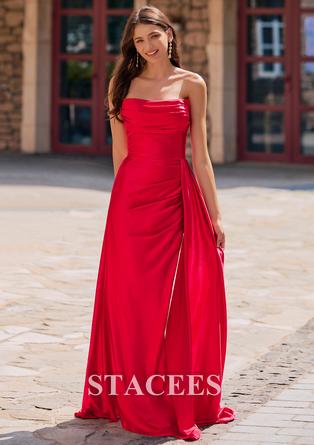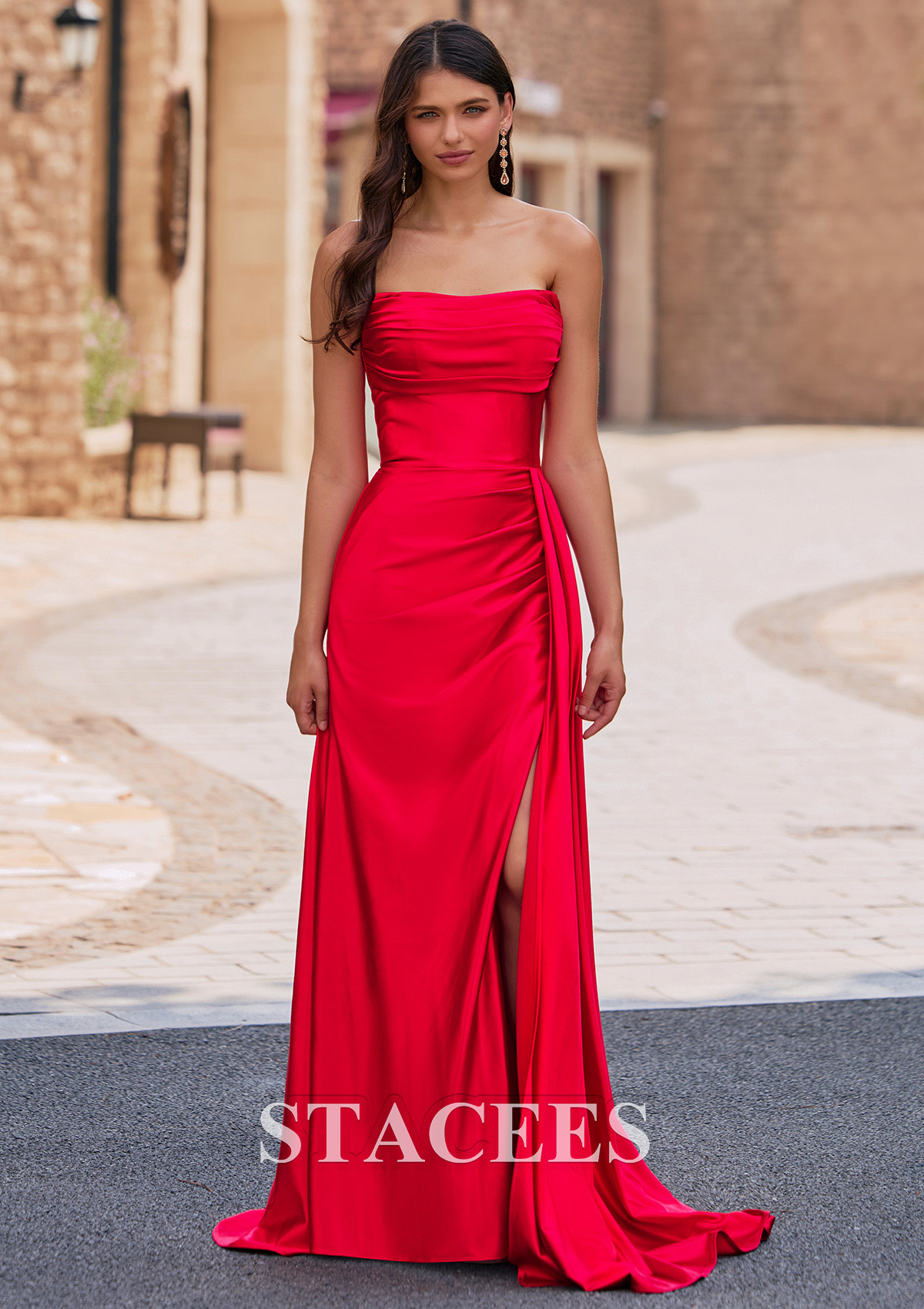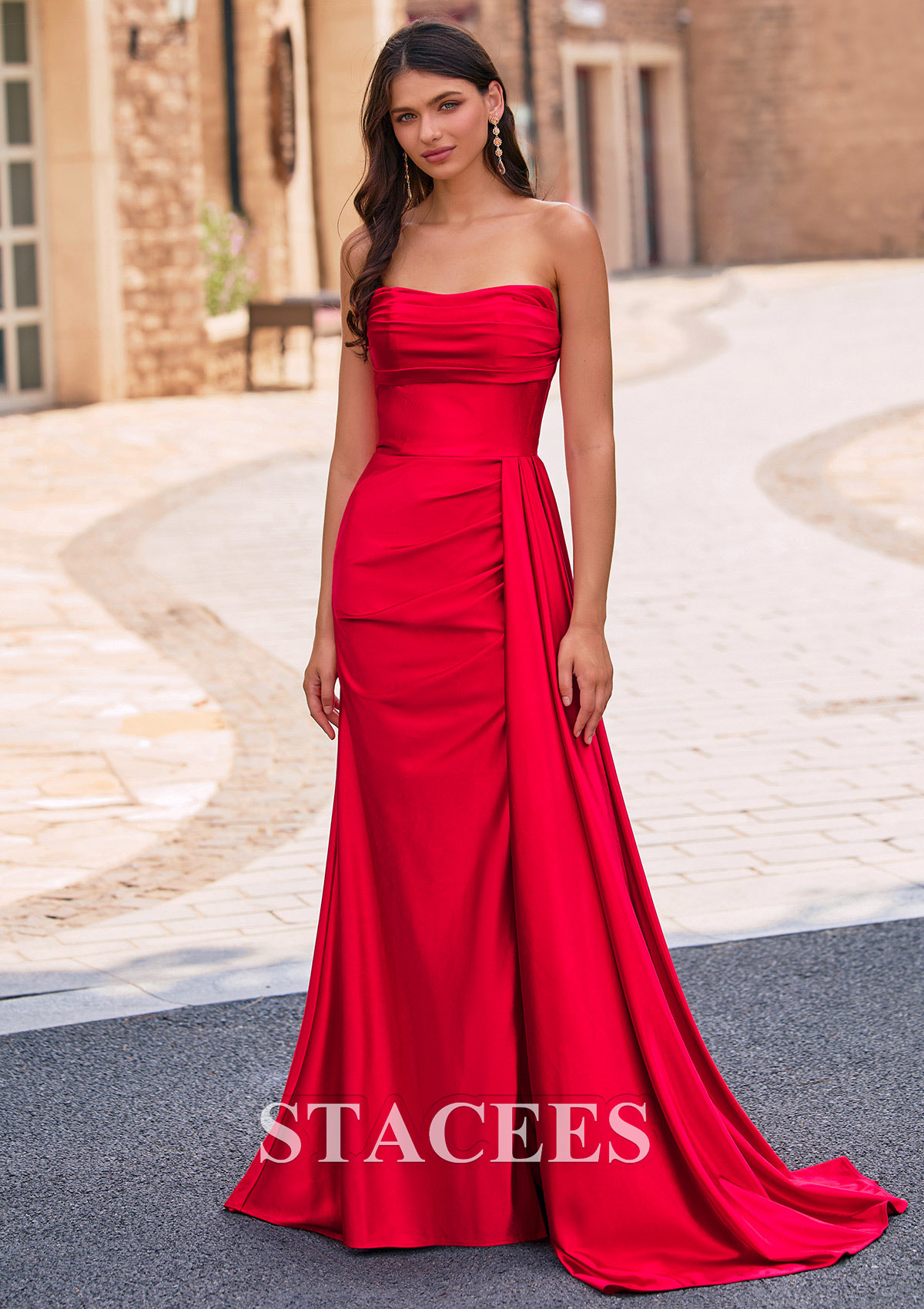 Fourreau carrée soie comme du satin traîne balayage robe de bal avec plissé drapé latéral S8958P - Robes de bal - Stacees.fr