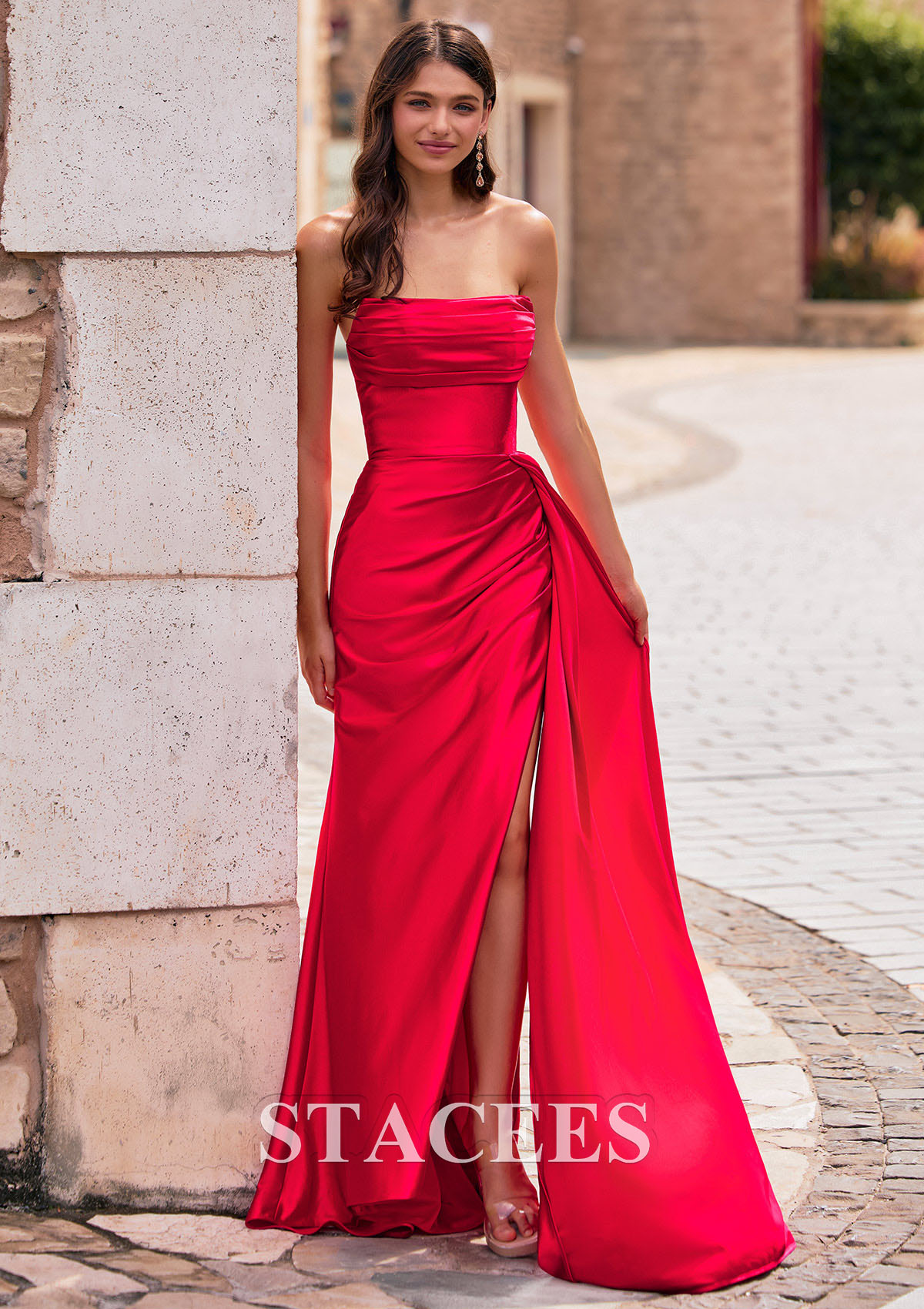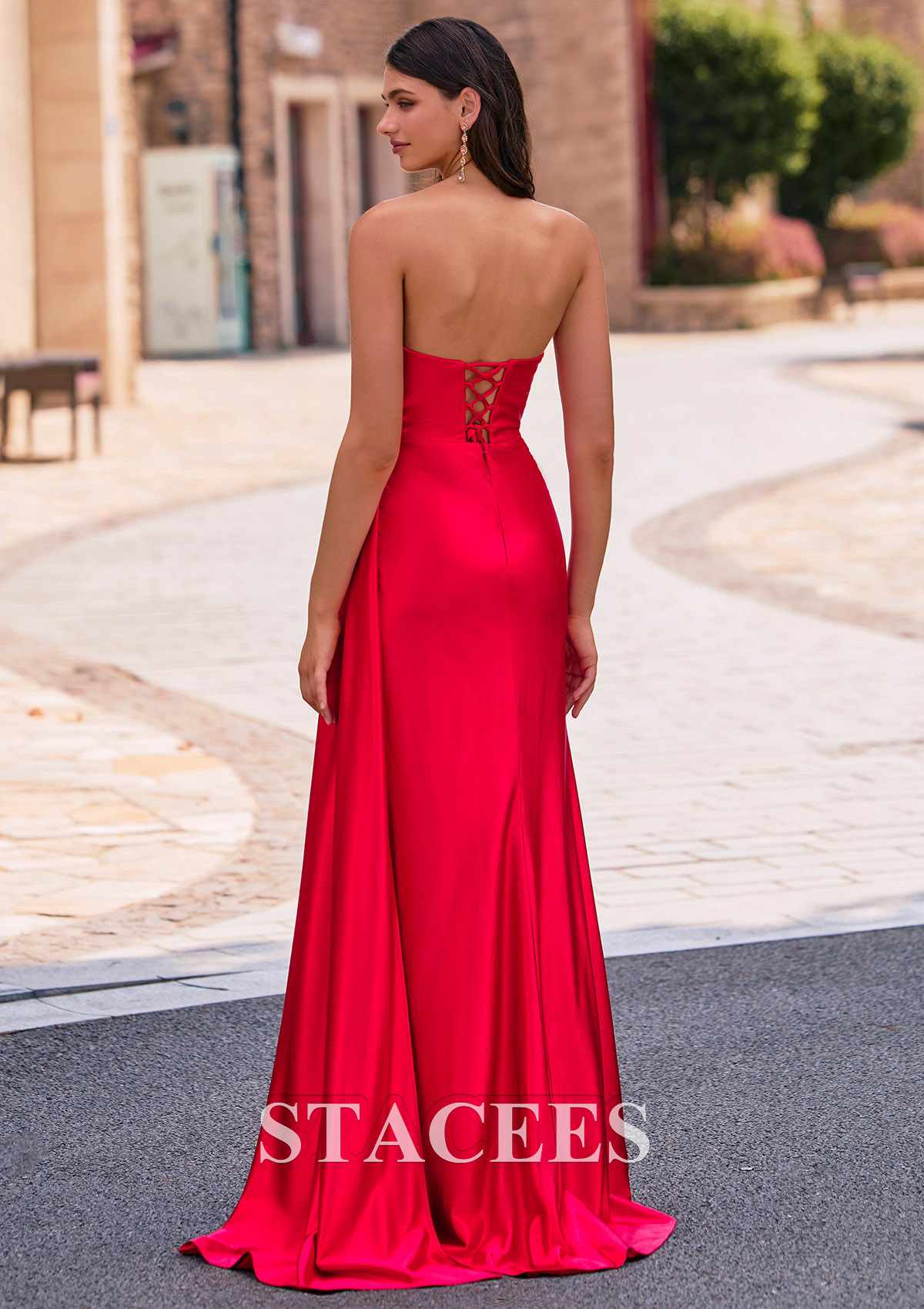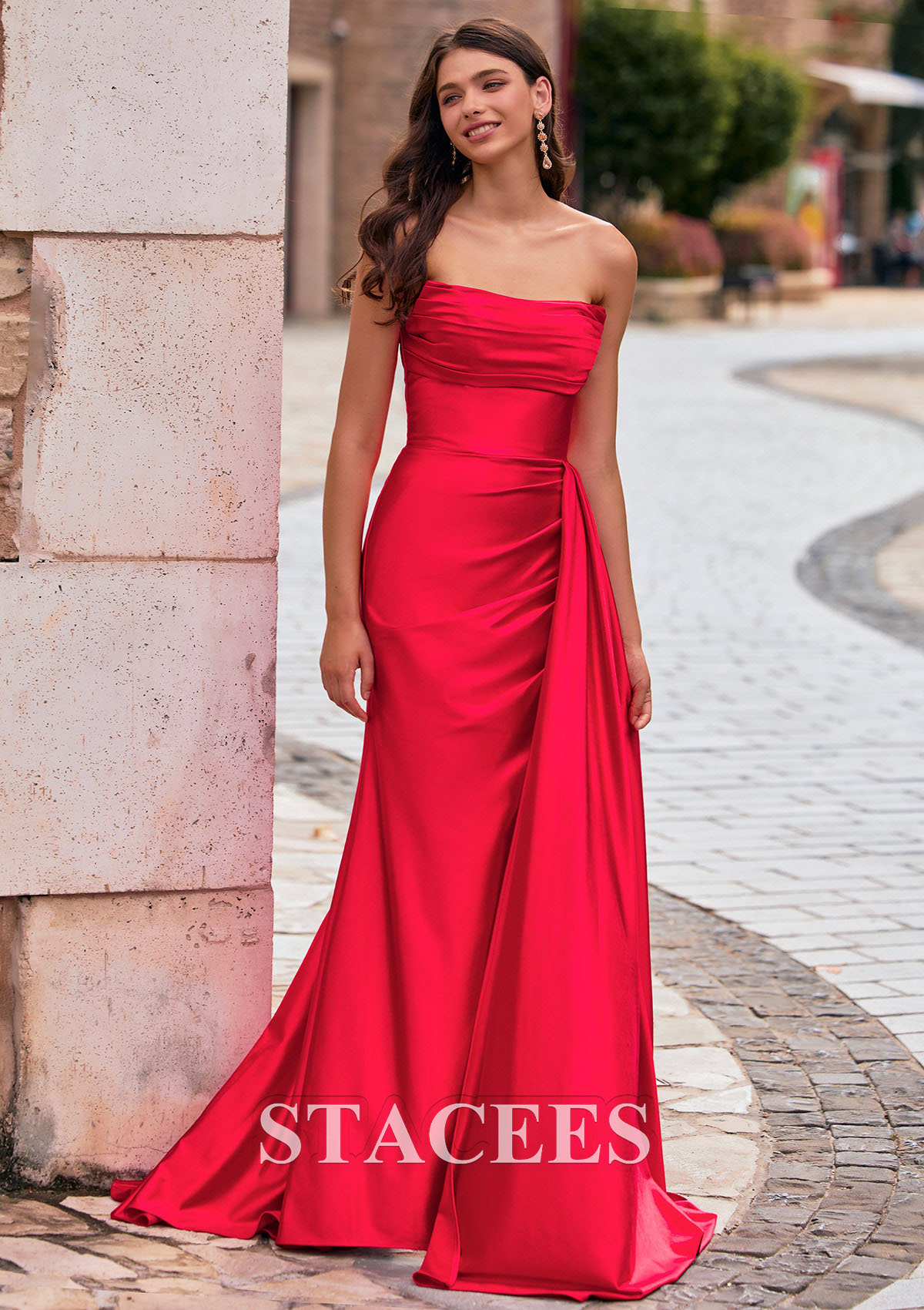 Fourreau carrée soie comme du satin traîne balayage robe de bal avec plissé drapé latéral S8958P - Robes de bal - Stacees.fr