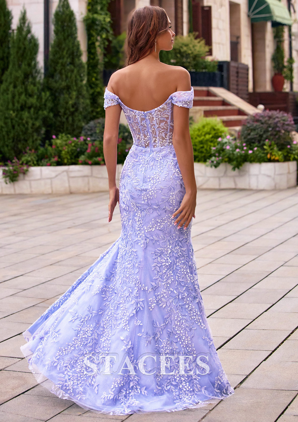 Fourreau épaule dénudée tulle longueur ras du sol robe de bal avec paillettes fendue S9013P - Robes de bal - Stacees.fr