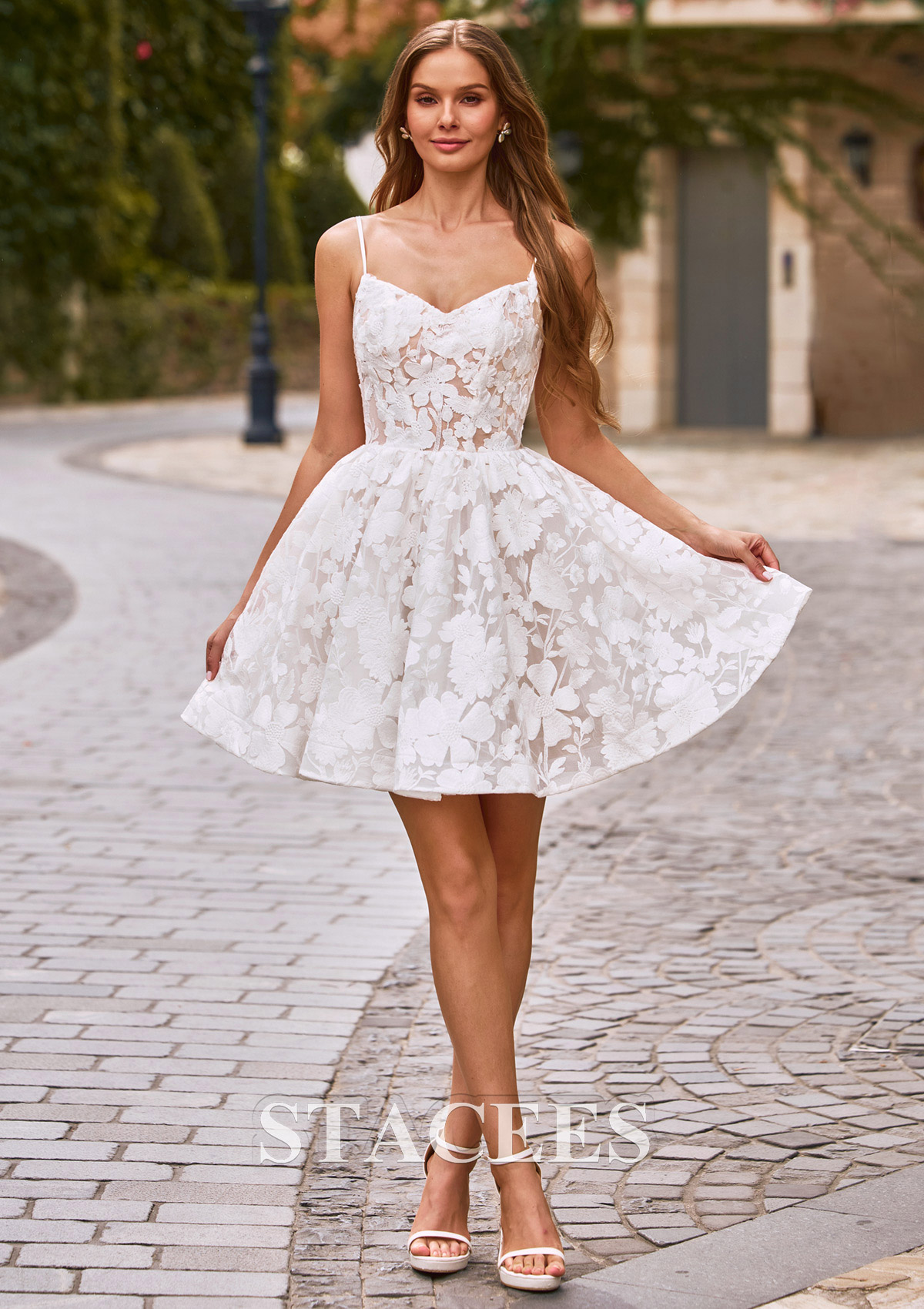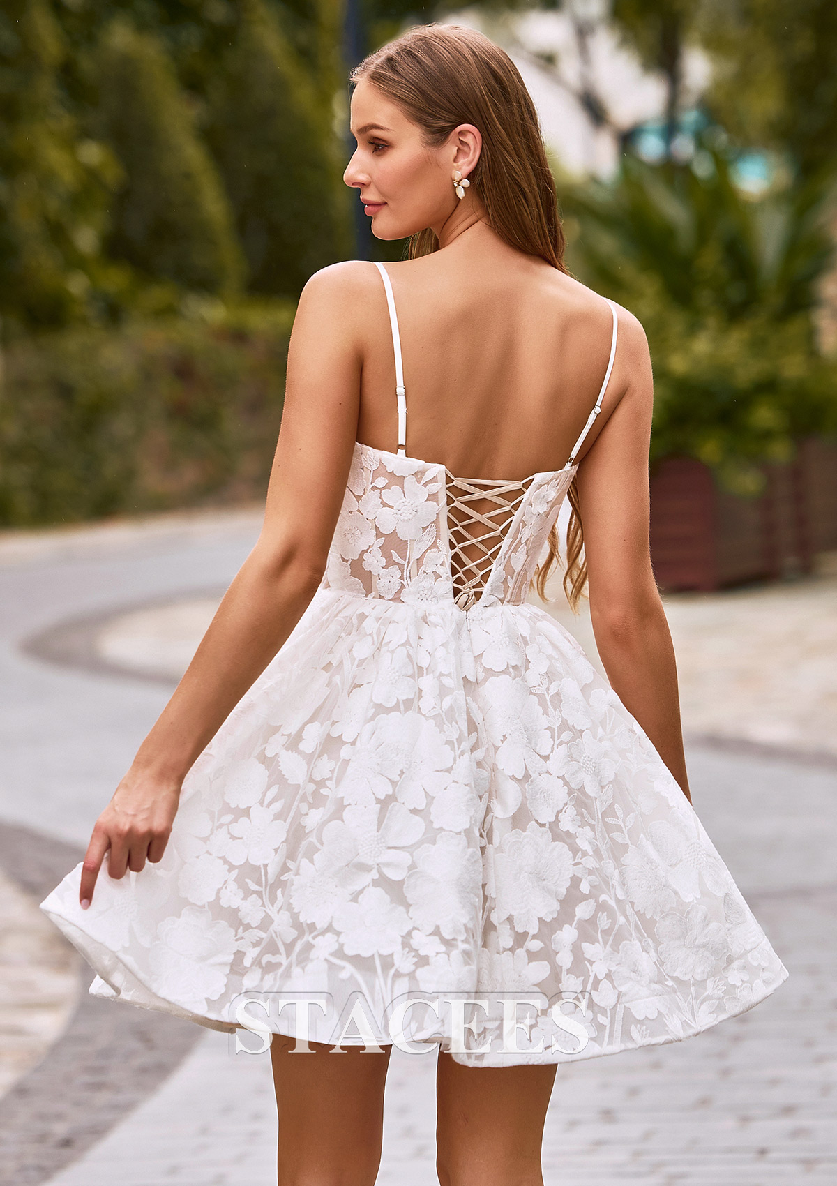 Trapèze col en v dentelle courte/mini robe de mariée S3158W - Robes de mariée - Stacees.fr