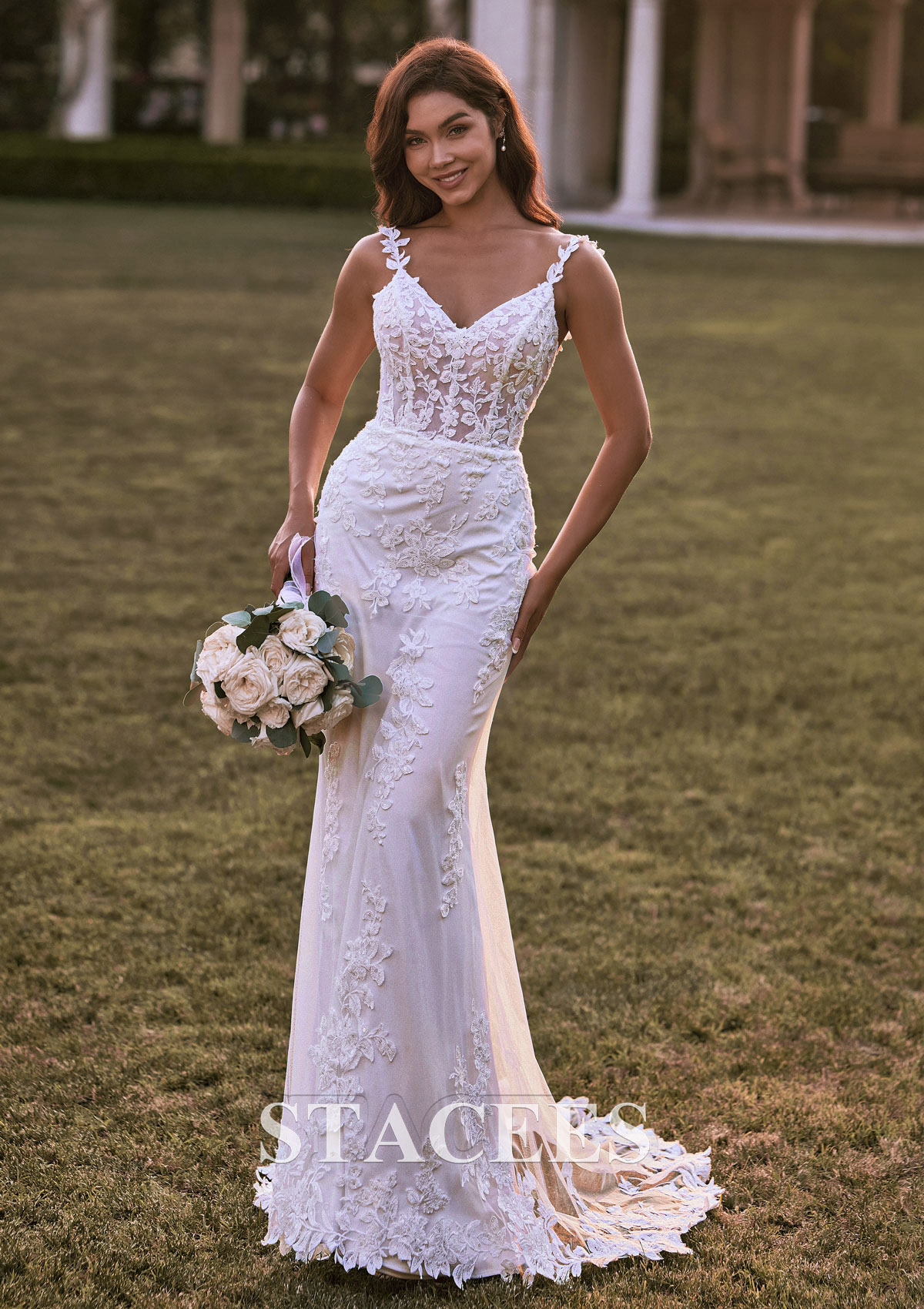This enchanting bridal gown features intricate lace embroidery that seamlessly blends sophistication with romance. This wedding dress is beautifully styled in a two-in-one look. The bodice is delicately adorned with lace detailing, while the flowing skirt creates a stunning silhouette. With its graceful train and soft fabric, this dress offers a perfect balance of elegance and effortless beauty. The gown's voluminous skirt adds a dramatic flair, making it ideal for a bride who wants to make a lasting impression on her special day.