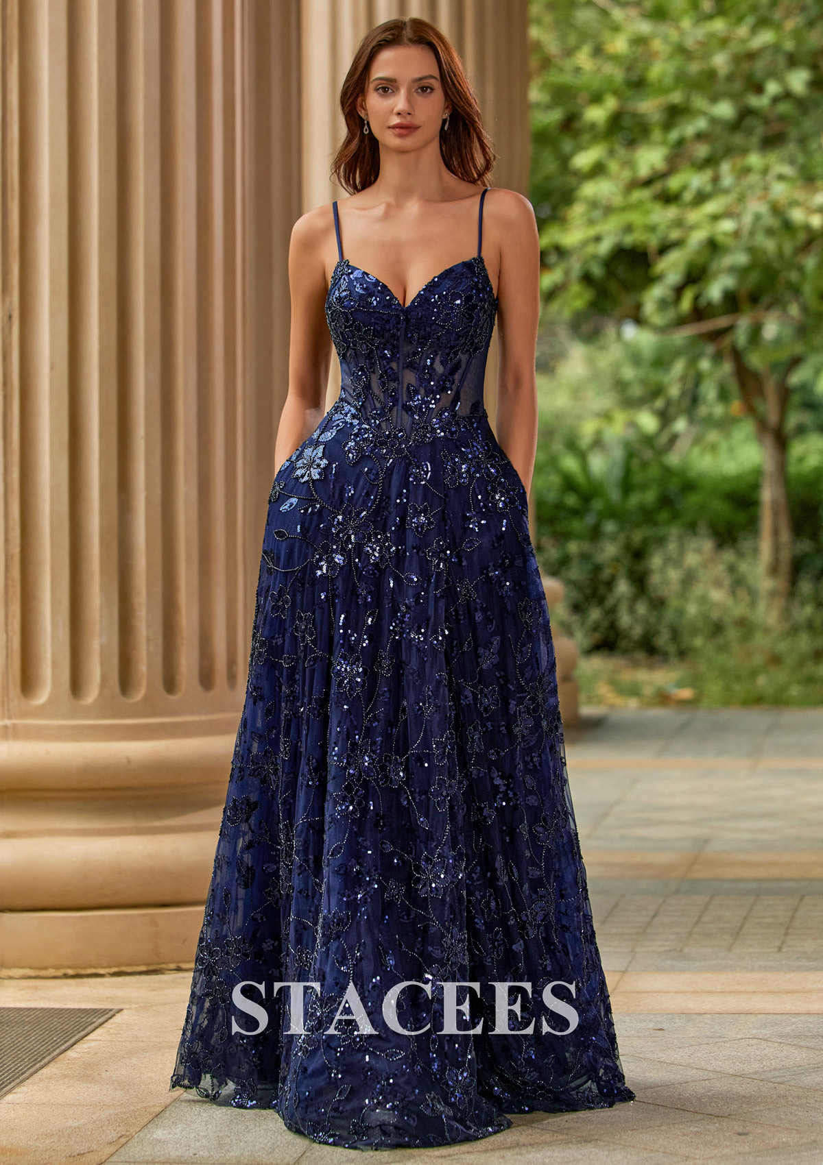 sequin bead lace A‑line prom dress