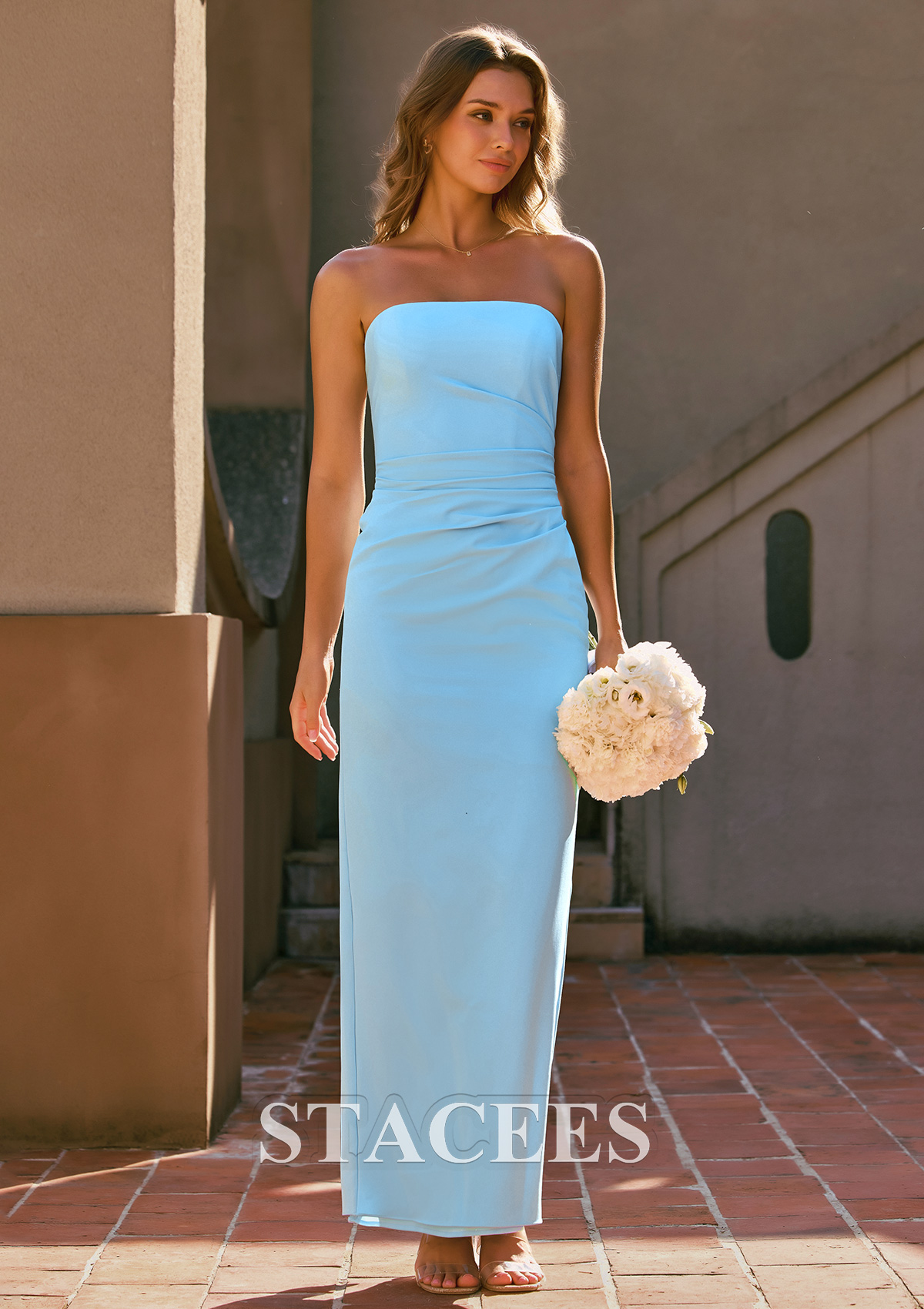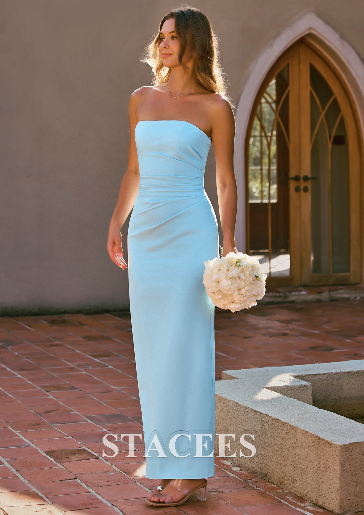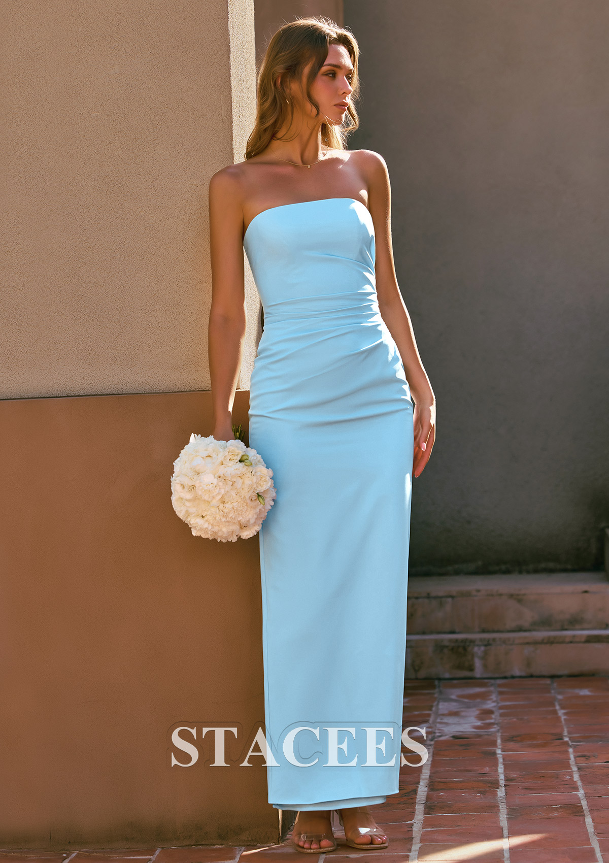 Elevate your bridal party style with this sophisticated bridesmaid dress, designed for modern weddings and timeless elegance. Featuring a sleek strapless neckline and a beautifully tailored, figure-hugging silhouette, this gown offers a refined and flattering fit for all body types. The subtle side ruching enhances the waistline, adding a touch of texture and dimension, while the floor-length skirt and tasteful back slit allow effortless movement and graceful flow. Perfect for outdoor weddings, garden ceremonies, beach celebrations, and contemporary bridal themes, this minimalist yet chic bridesmaid dress delivers both comfort and high-fashion appeal. Made with quality fabric for a smooth, polished finish, it is an ideal choice for bridesmaids seeking a clean, stylish, and unforgettable look.