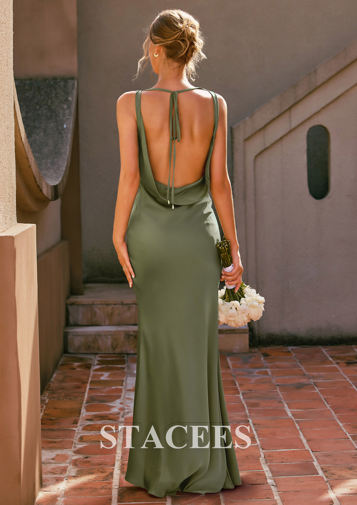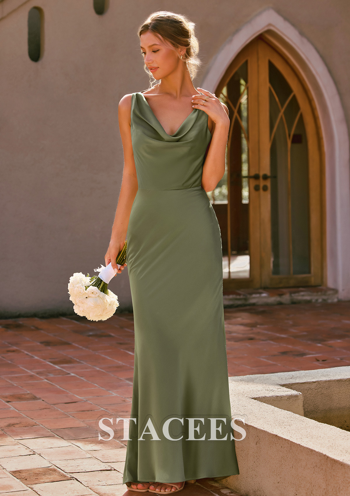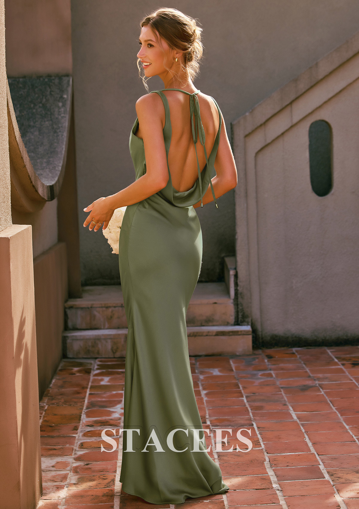 Fitted Cowl Neck Stretch Satin Floor-Length Bridesmaid Dress with Open Back S6034BA - Bridesmaid Dresses - Stacees