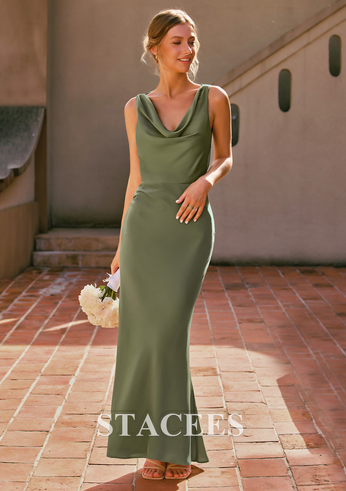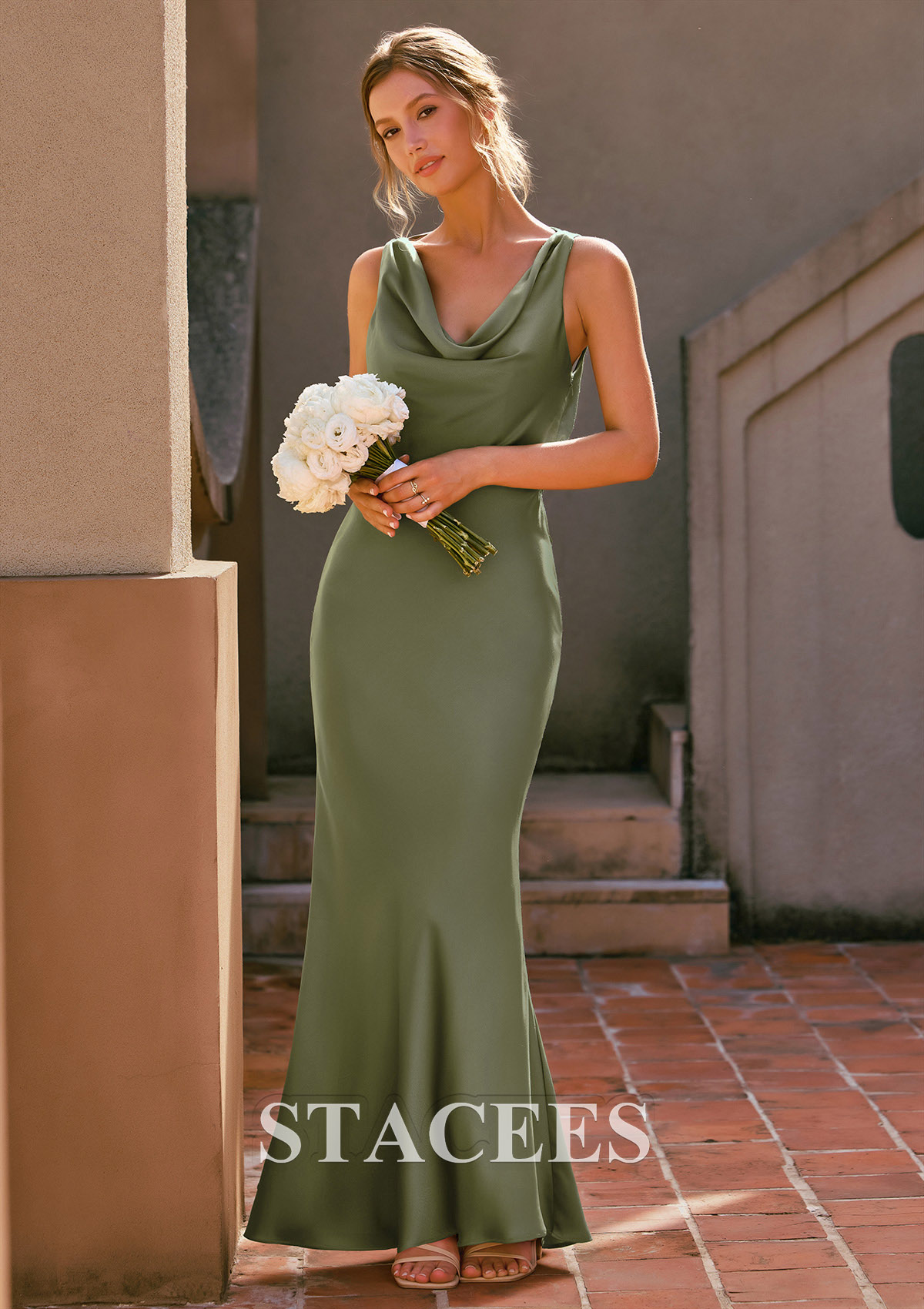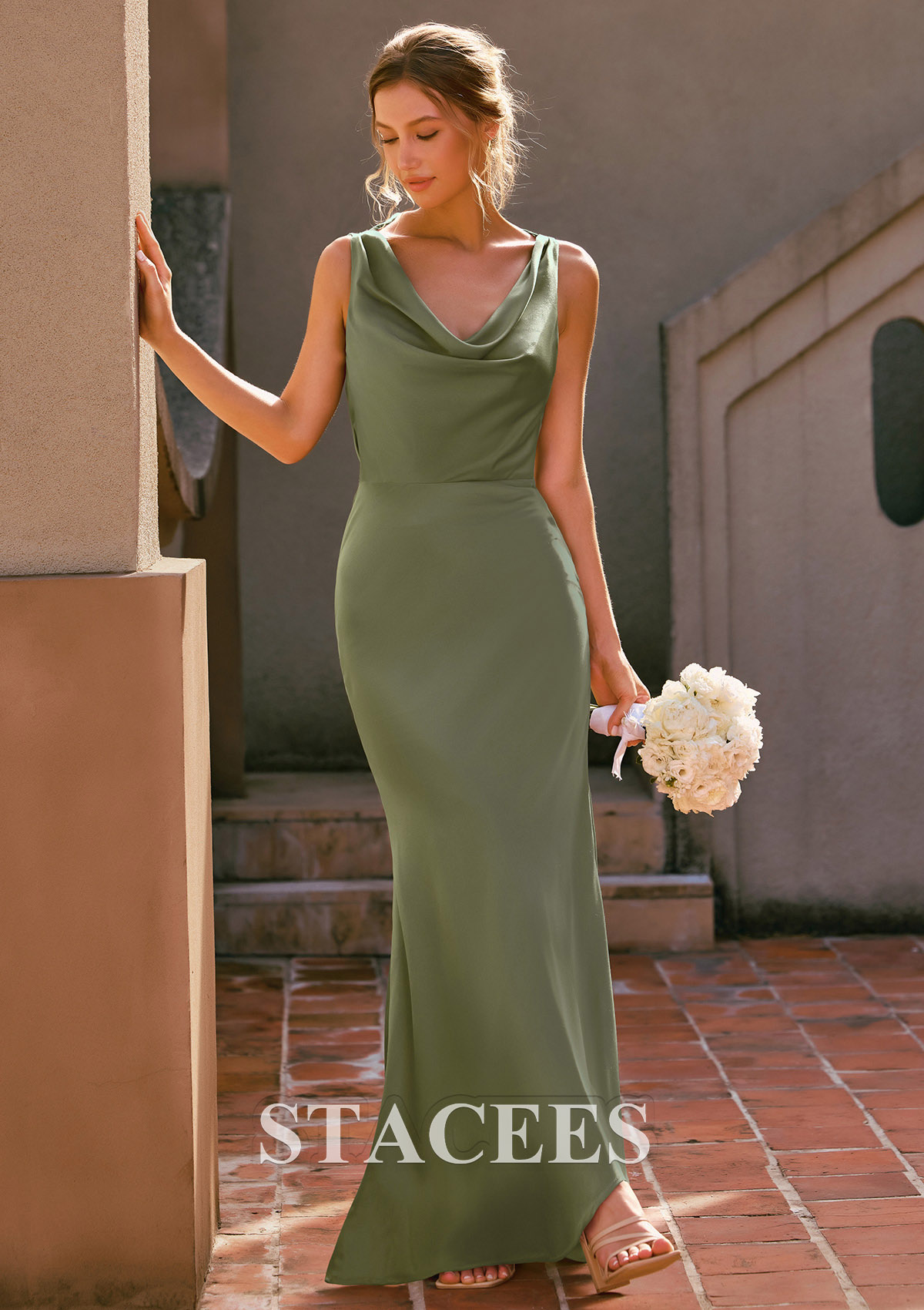 Fitted Cowl Neck Stretch Satin Floor-Length Bridesmaid Dress with Open Back S6034BA - Bridesmaid Dresses - Stacees