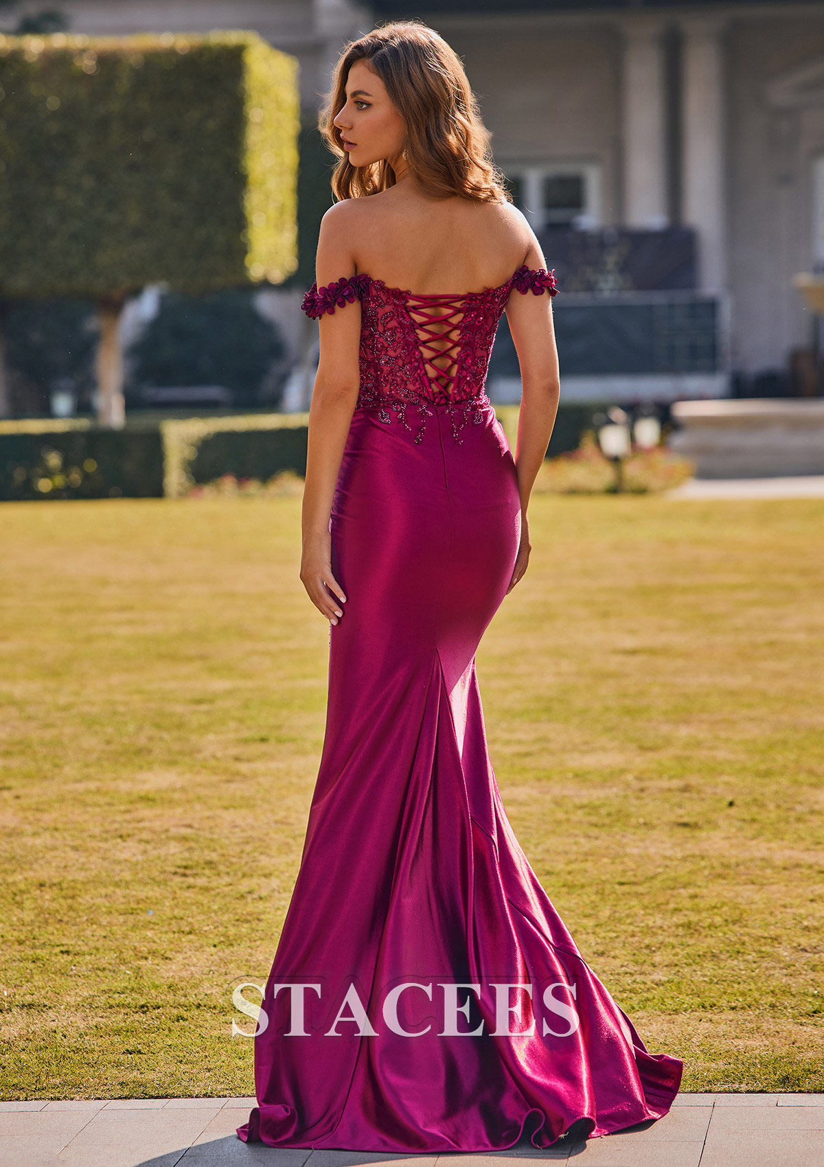 Mermaid Applique Off-the-Shoulder Floral Corset Tight Slit Prom Dress S8336PG - Prom Dresses - Stacees