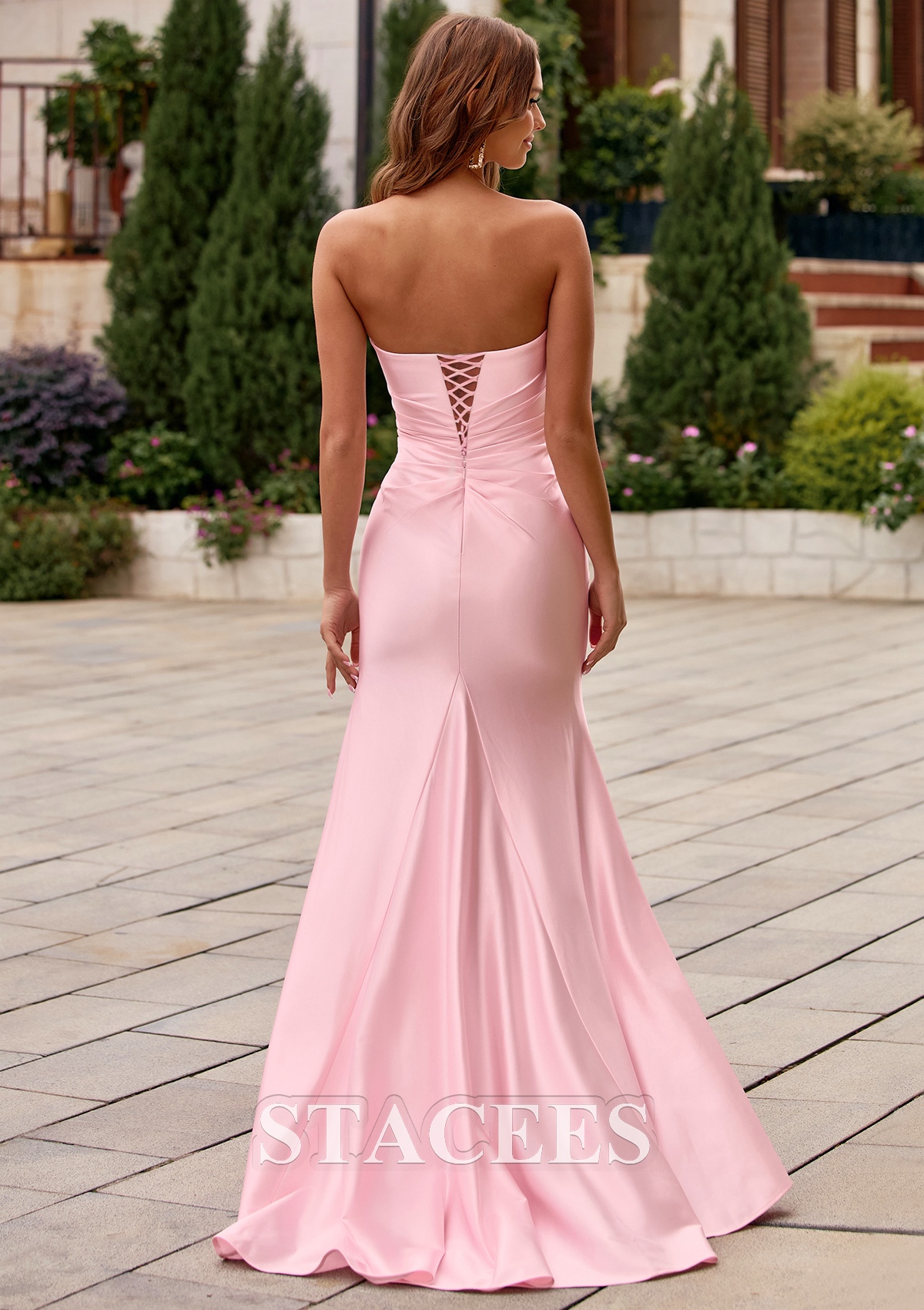 Elevate your evening attire with this stunning strapless evening gown, a perfect blend of modern glamour and timeless elegance, perfect for prom, galas, and formal occasions. The dress features a classic straight-across neckline and a beautifully draped, fitted ruched bodice that accentuates your figure. A cascading ruffle runs gracefully along the side, highlighting a bold thigh-high slit that adds both drama and sophistication to your look. The soft, flowing fabric glides effortlessly to the floor, finishing in a gentle, mermaid-inspired silhouette. From the back, the fitted design continues with subtle ruching and an invisible zipper for a seamless finish, ensuring a flattering form from every angle. This gown delicate blush pink hue is versatile for both daytime and evening events, while the structured bodice offers support and comfort. Ideal for outdoor or indoor celebrations, this prom dress pairs beautifully with strappy heels and minimalist accessories, making you the star of any formal event.