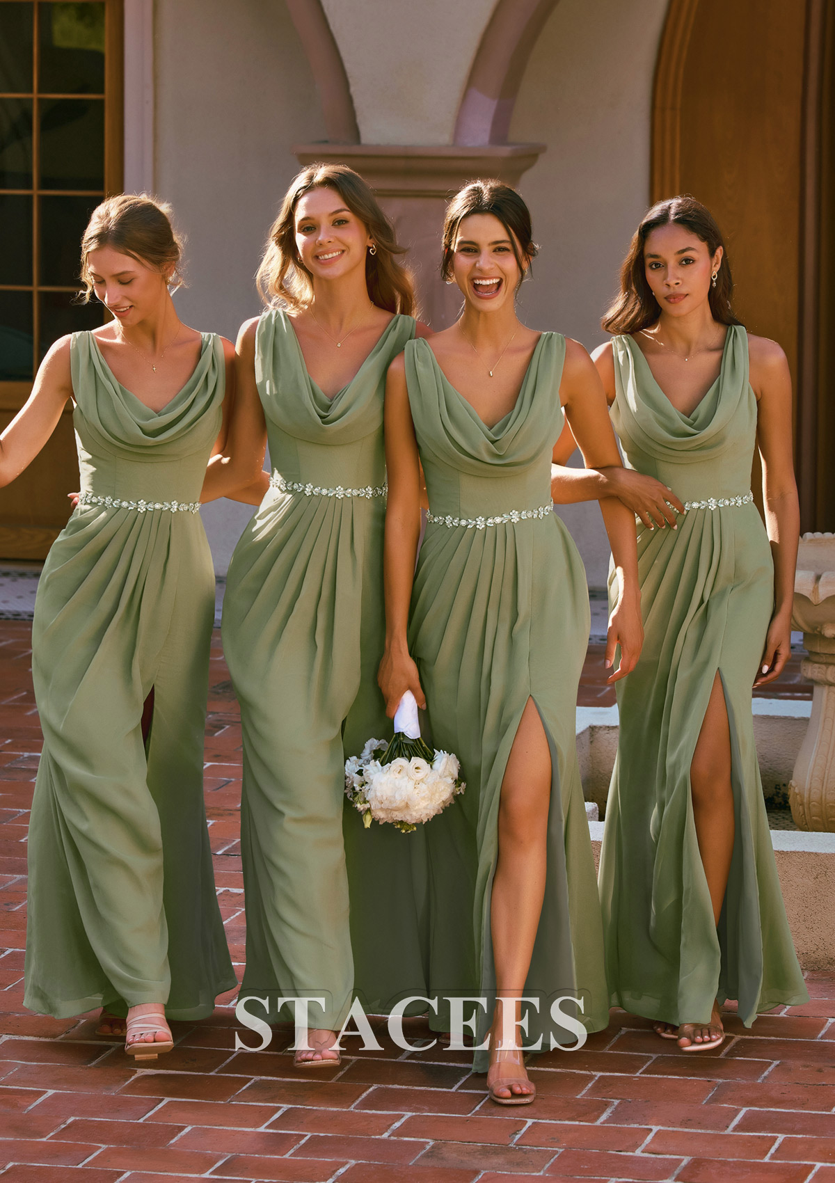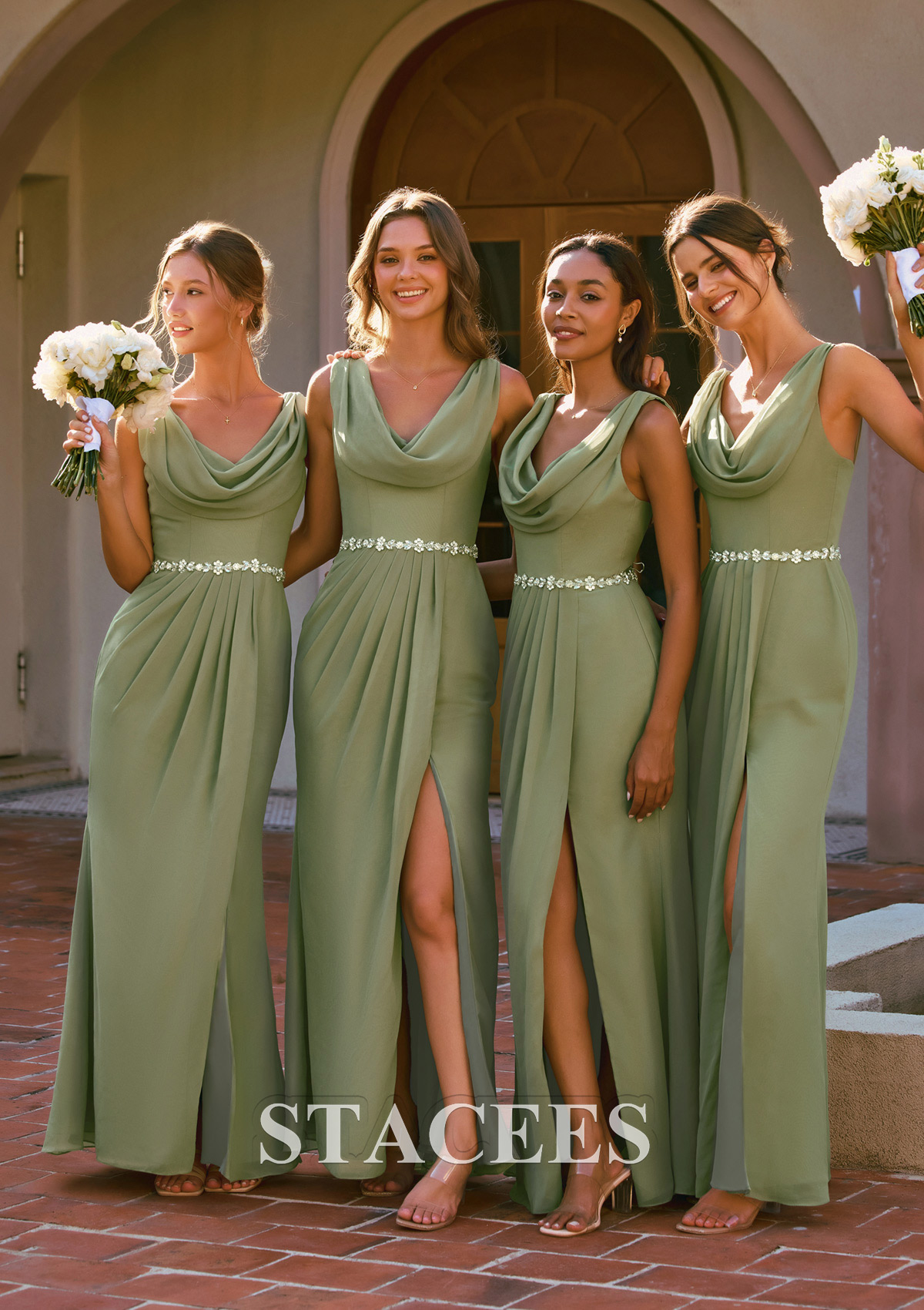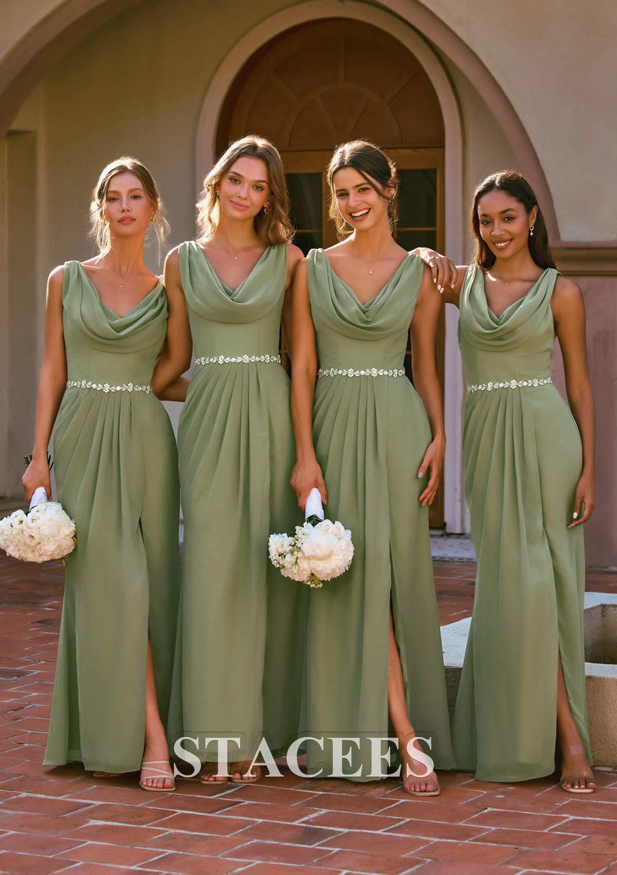 Tubo escote drapeado gasa hasta el suelo vestido de dama de honor S6144B - Vestidos de dama de honor- Stacees.es