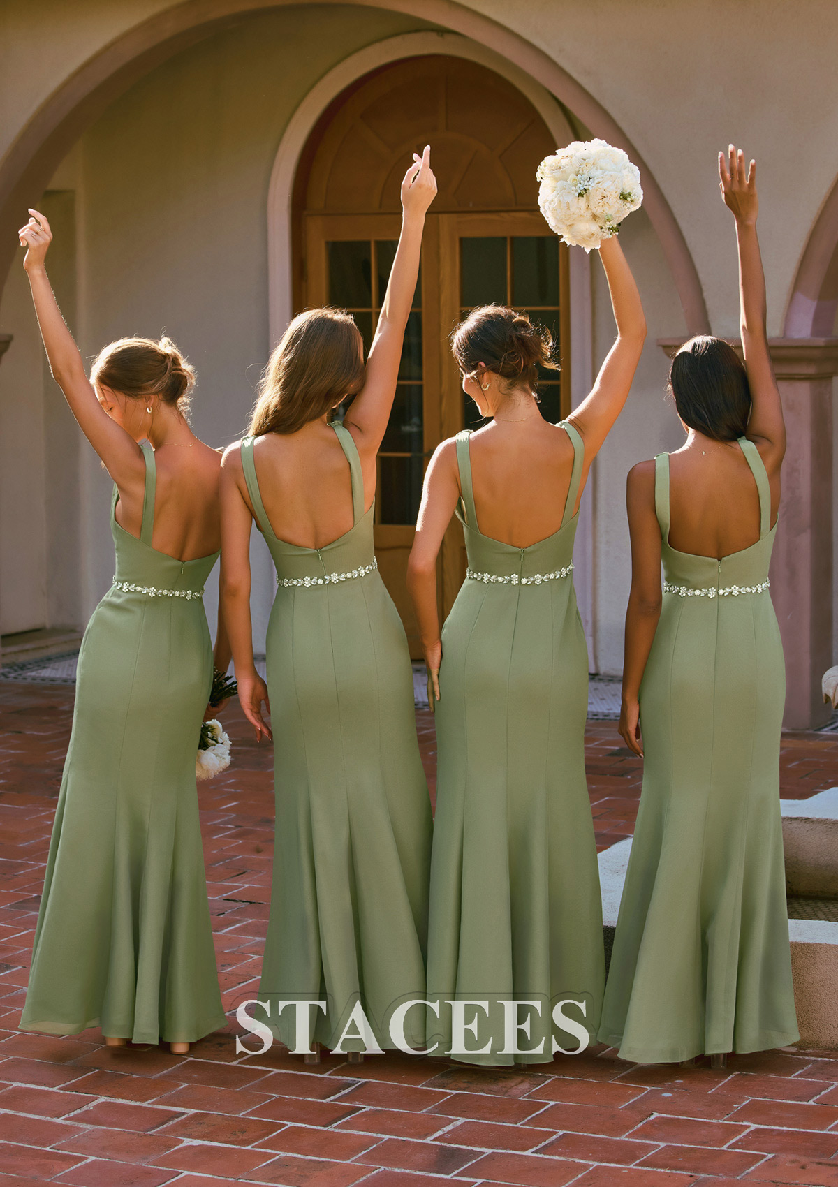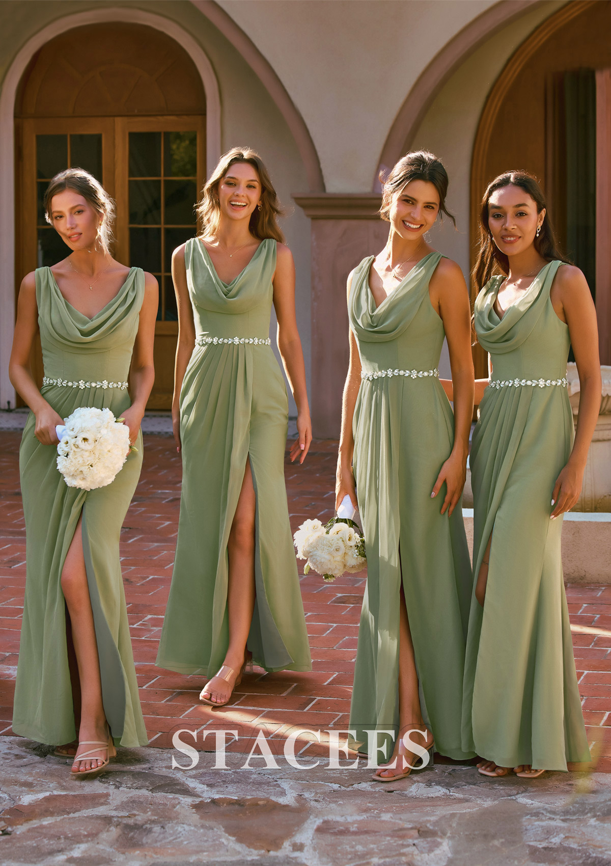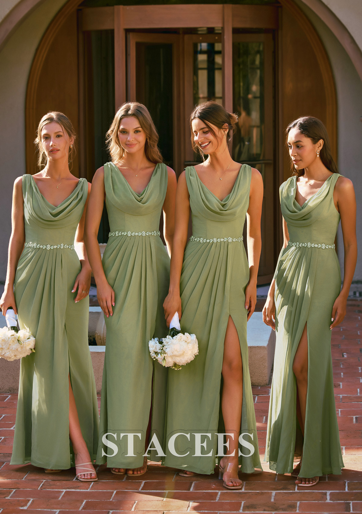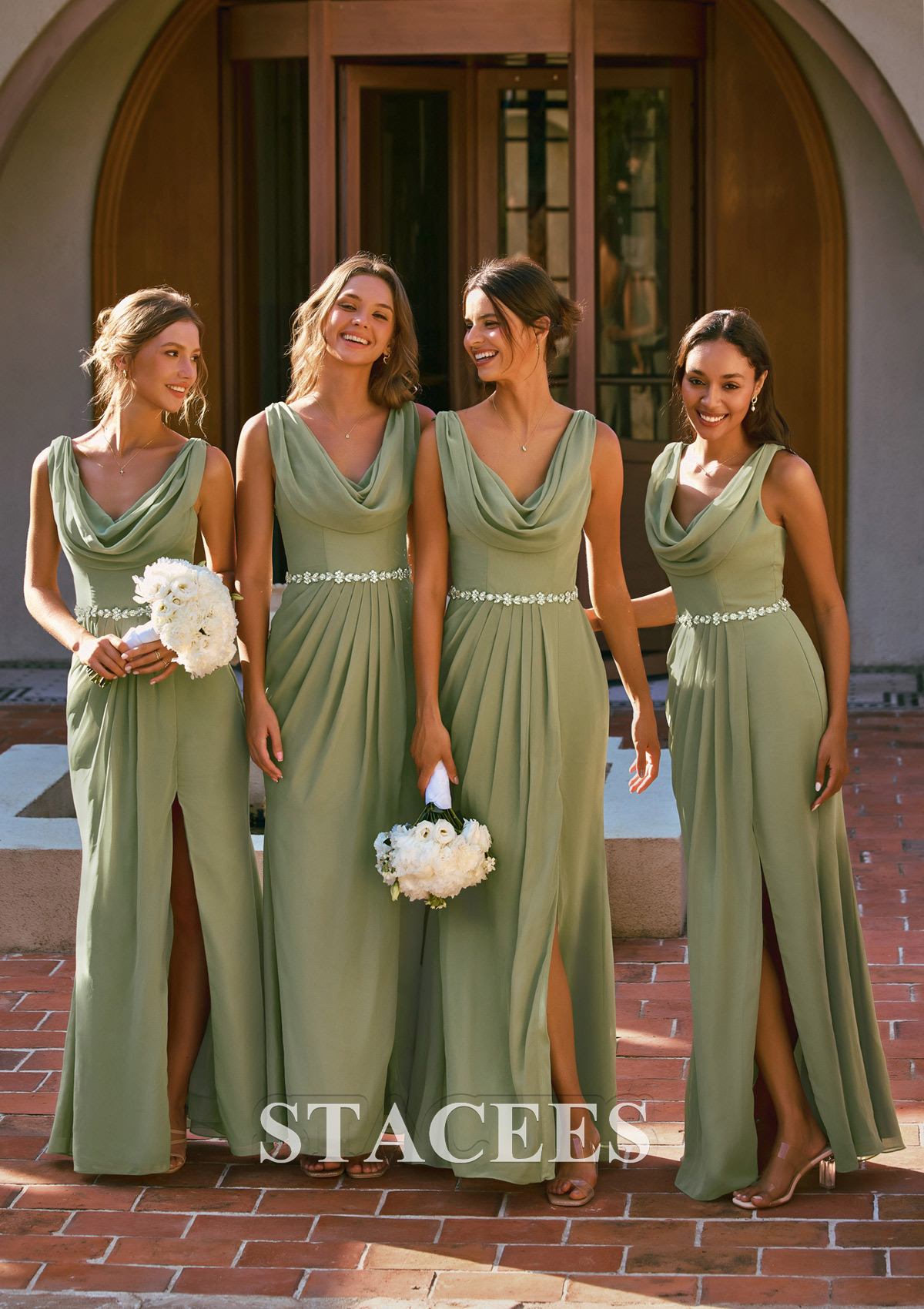 Tubo escote drapeado gasa hasta el suelo vestido de dama de honor S6144B - Vestidos de dama de honor- Stacees.es