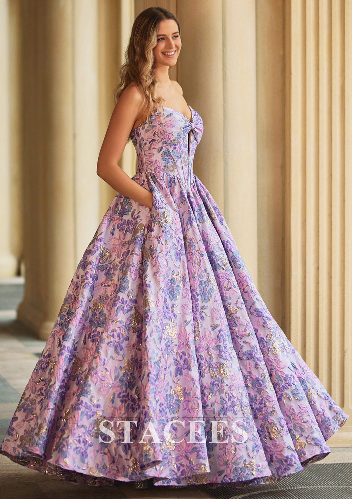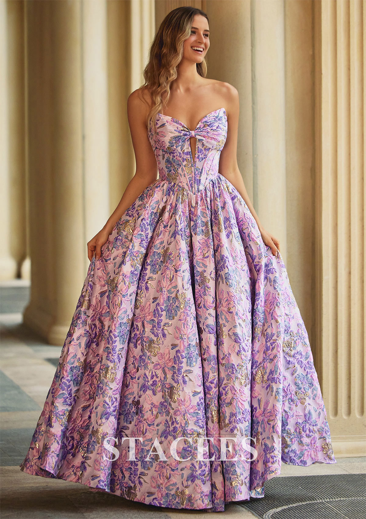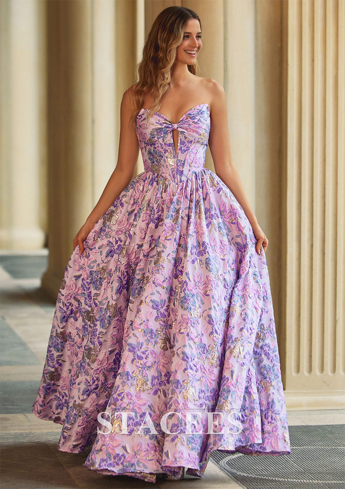Vestido línea a cuello de corazón brocado hasta el suelo vestido de graduación S9100P - Vestidos de graduación - Stacees.es